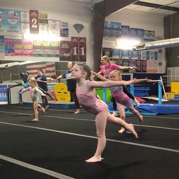 Our Kindergym classes are 45 minutes and are for girls and boys ages 3-6. Our instructors will teach basic gymnastics skills on the floor, beam, bars and trampoline events. These classes also help develop hand eye coordination and locomotor skills for your child, and will also help to develop very important social skills such as following directions, taking turns and learning to work together!